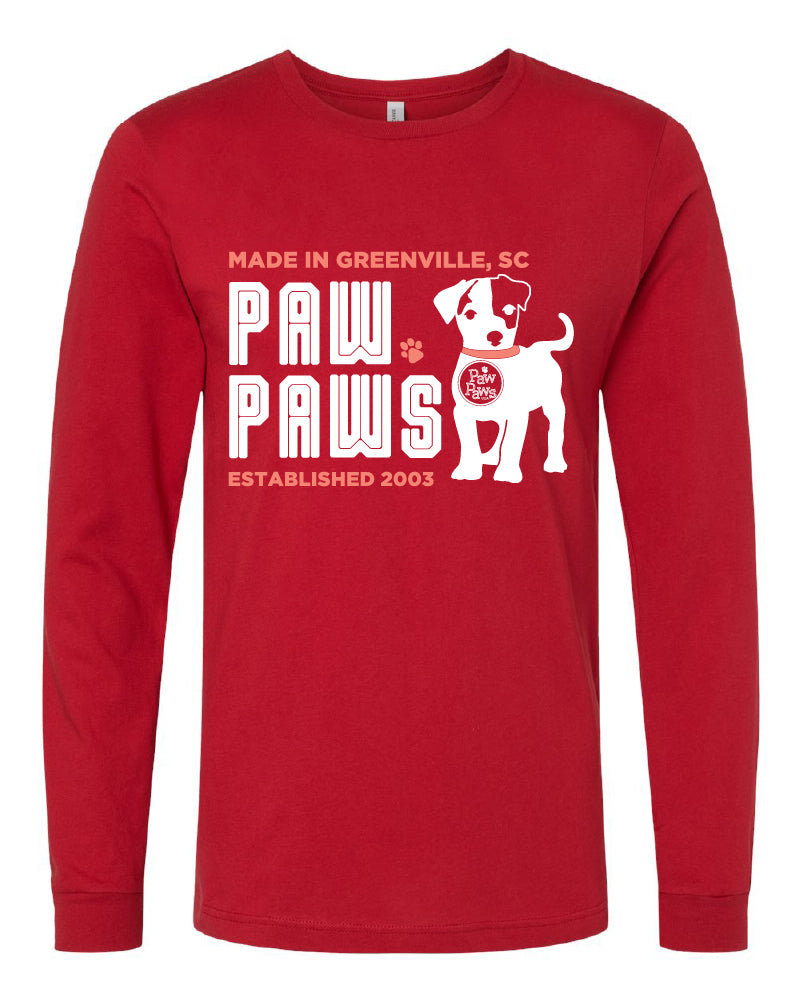 Long Sleeve Paw Paws Canvas Red T-shirt