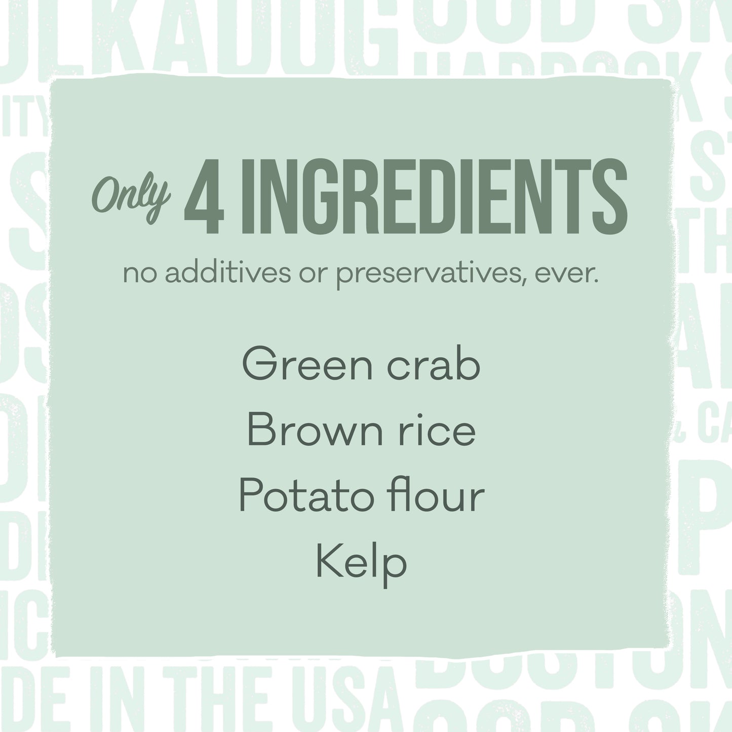Green Monstah is made from green crab and kelp, two local ultra-rich sources of protein and Omega-3s. And these two ingredients are particularly special. Finding ways to manage the over-abundance of green crab populations in New England waters is the challenge. The reward is the restoration of biodiversity in coastal ecosystems, and the creation of new economic opportunities for local fishers.