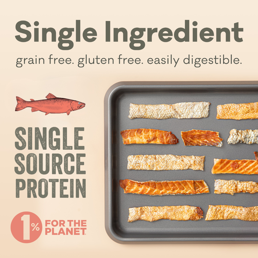 One ingredient. 100% sustainable goodness. Polkadog Salmon Skins Smoked Jerky is made from a single, sustainable, healthy ingredient: salmon skin. Handmade in the USA at Polkadog’s Boston Fish Pier kitchen, our jerky is slowly dehydrated to create the perfect savory treat.