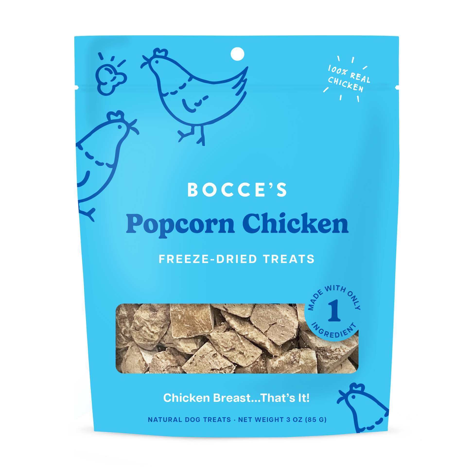 We like to keep things simple (and FUN!) around here…and what’s more simple than a single-ingredient treat? Packed with protein (and in low fat!) these Freeze-Dried Popcorn Chicken treats are the perfect snack to make your pup feel a part of the family at mealtime.